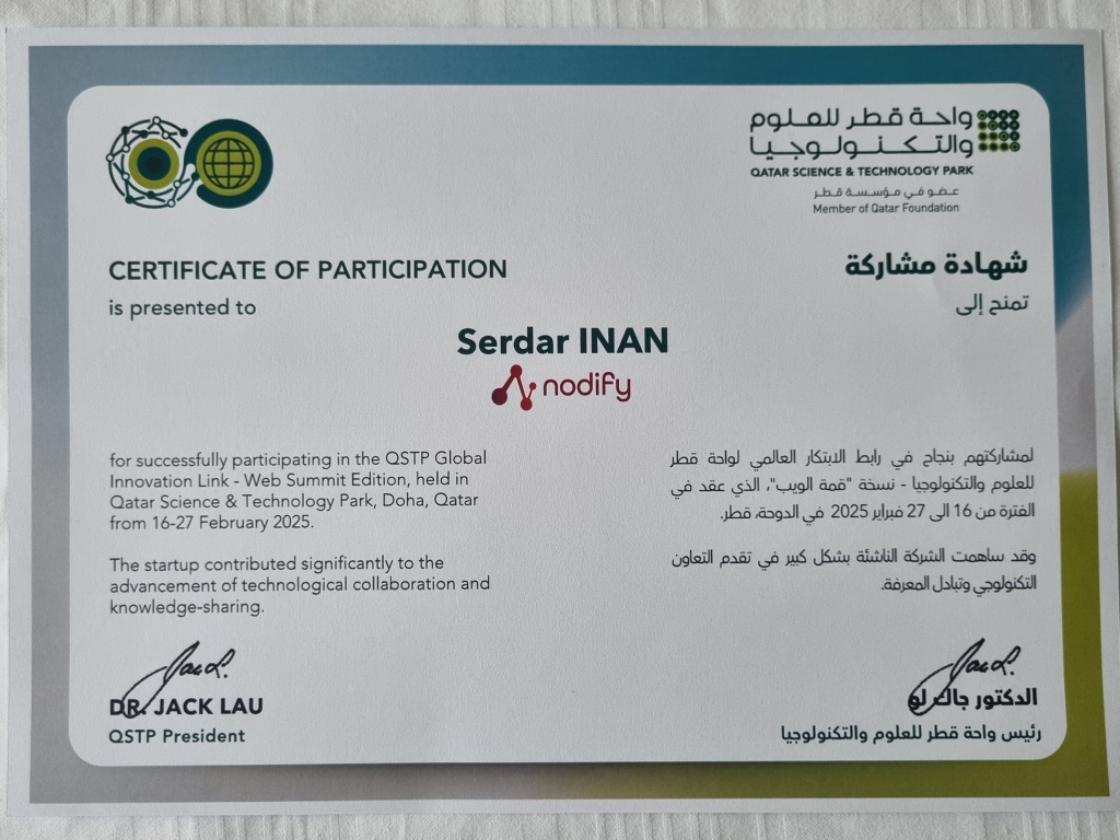 Participating in this event has been a significant step in Nodify’s long-term global vision. It provided us with an in-depth understanding of the regional ecosystem and valuable connections that will drive our future expansion. In the near future, we look forward to announcing strategic partnerships with several companies operating in the region, further strengthening our presence in the Qatar and GCC markets.